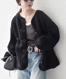 着用アイテム:SHIPS any:〈洗濯機可能〉ボア フリース 2WAY フーディー ブルゾン ブラック
