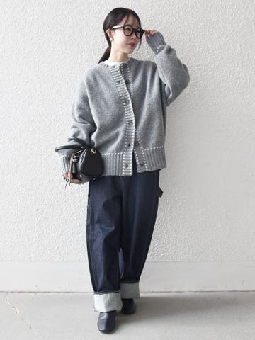カーディガン一枚で着映え&主役になる秋口にぴったりなコーディネート。