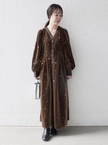 着用アイテム:【WEB限定】SHIPS any:〈手洗い可能〉ジャカード バンピー コンパクト カーディガン キャメル