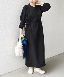 着用アイテム:〈手洗い可能〉プリーツ デザイン ロングスリーブ ワンピース◆