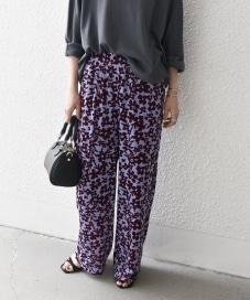 〔ONE SIZE〕SHIPS any:〈洗濯機可能〉フラワー ポリエステル ベロア ワイド イージー パンツ