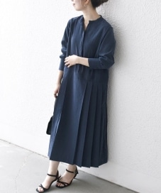 着用アイテム: SHIPS any:〈洗濯機可能〉ピーチスキン サイド プリーツ バンドカラー シャツ ワンピース