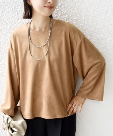 〔ONE SIZE〕〈手洗い可能〉ポリエステル スエード ワイド スリーブ プルオーバー
