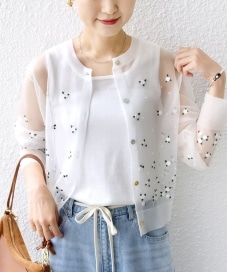 着心地:ハリ感のある2wayシアーカーディガン。