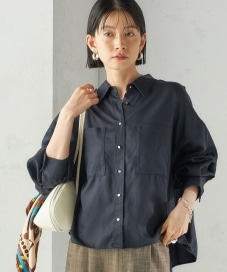 着心地:セルロース生地なので肌触りがとても気持ちいいです。着丈が短めでボトムスとのバランスがとりやすいです。メンズライクなデザインに艶のある生地でこなれ感がでます◎