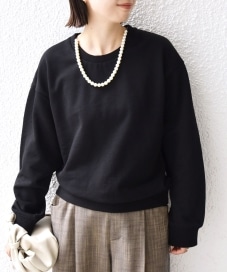 〔ONE SIZE〕【WEB限定】〈手洗い可能〉パール調 ネックレス チャーム 付 ドルマン スウェット