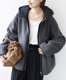 着心地:裏地が付いているので、袖を通しやすく、しっかり防寒できます。フード付きですが、きれいめなボア素材なので大人っぽく着こなせるのも嬉しいポイント。