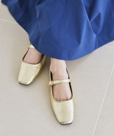 〔35〕quaranciel: ストラップ スクエア フラット シューズ