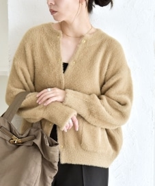 着用アイテム:フェイクファー クルーネック コンパクト ニット カーディガン