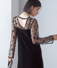 〔ONE SIZE〕kaene:フロッキー レース ポリエステルベロア 2WAY ドレス(セレモニー対応可)