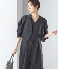 〔ONE SIZE〕little black:〈手洗い可能〉ネジリ スリーブ シアー ショート 羽織(セレモニー対応可)
