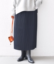 ウエストはゴムでフィット感あります。着丈も長すぎないので、小柄な方でもバランス取りやすいと思います。細いプリーツがクラシックな印象になります。