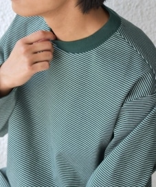 〔MEDIUM〕SHIPS any: デザインリブ ハイゲージ ポンチ マイクロ ボーダー Tシャツ (ロンT)◆
