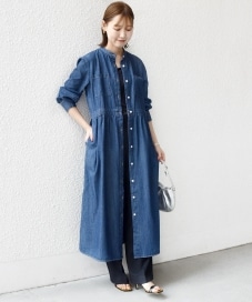 〔ONE SIZE〕〈洗濯機可能〉ライトオンス デニム ウエスト 切替 ワンピース
