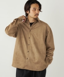 〔LARGE〕SHIPS Colors:〈洗濯機可能〉ポリエステル フェイクスエード ルーズ シャツ