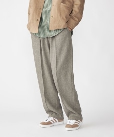 着心地:ポリエステル素材で、落ち感のあるワイドパンツです。ヘリンボーン柄で、季節感もあります。