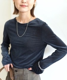 着心地:くたっとしたベロアポリエステル素材、前後2wayで着用可能です。シンプルですが落ち感もあり1枚で着ても雰囲気の出るアイテムです。
