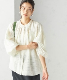 〔ONE SIZE〕〈手洗い可能〉シアー ジャカード 袖 シャーリング ブラウス