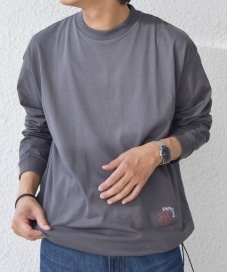 〔MEDIUM〕SHIPS any: オーガニック コットン ワンポイント ロゴ プリント×刺繍 スピンドル Tシャツ(ロンT)◇