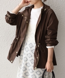 【素材感・着心地】やや張りのある素材感でカジュアルすぎず上品な素材。袖裏の裏地がないことで気温差のある今の時期に◎軽い着心地でブルゾン感覚でお使い頂けます♪