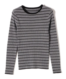 【素材感・着心地】程よくゆとりのあるシルエットのボーダーリブニット。広めのクルーネックですっきりとした印象があります。袖がやや長めでアウターからちらっとボーダーが見えるのもかわいいです!