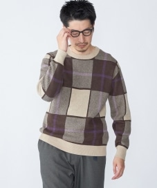 〔SMALL〕SHIPS:〈洗濯機可能〉 コットン カシミヤ チェック クルーネック ニット