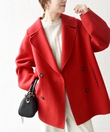 着用アイテム:リバー ダブル テーラード ミドル コクーン コート レッド