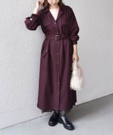 アウター使いもできるワンピースです。丈も長めで、落ち着いたイメージに。カラー展開も上品でシックな装いに。