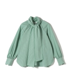 〔ONE SIZE〕SHIPS Primary Navy Label:〈手洗い可能〉ストレッチ ギンガム ボウタイ ブラウス