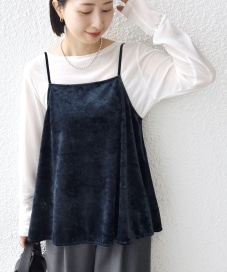 〔ONE SIZE〕〈手洗い可能〉スノー クラッシュ ポリエステル ベロア サイド スリット キャミ