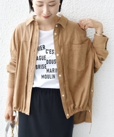 〔ONE SIZE〕〈手洗い可能〉ポリエステル スエード 裾 ドロスト シャツ 羽織