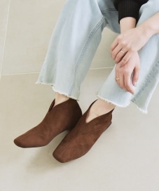 〔37〕quaranciel: Vカット スクエアトゥ ショート ブーツ