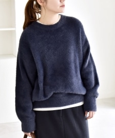 〔ONE SIZE〕quaranciel:〈手洗い可能〉ファーライク クルーネック ニット プルオーバー