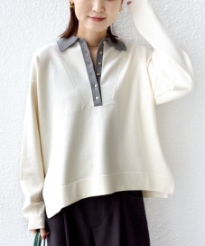 ■着心地:ゆったりとリラックス感のある着心地です。1枚でもきまるポロニットです。