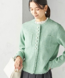 〔ONE SIZE〕〈手洗い可能〉ストレッチ ツイード パール ボタン ジャケット