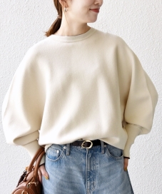 〔ONE SIZE〕《追加予約》SHIPS any:〈手洗い可能〉ダブルフェイス ボリュームスリーブ ニット プルオーバー