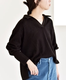 〔ONE SIZE〕quaranciel:〈手洗い可能〉ケーブル ジャージー ラガー プルオーバー