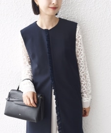 〔ONE SIZE〕【SHIPS別注】kaene:〈洗濯機可能〉ダンボール フリル ロング ジレ(セレモニー対応可)