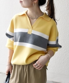 着用アイテム:SHIPS any:〈手洗い可能〉パネル ボーダー スキッパー ニット プルオーバー