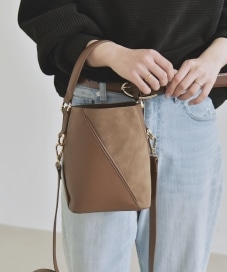 〔ONE SIZE〕quaranciel: 2way コンビ バケツ ショルダーバッグ × フェイクファー 巾着