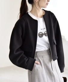 〔ONE SIZE〕quaranciel:〈洗濯機可能〉ダンボール 裏起毛 ノーカラー コクーン ショート ブルゾン