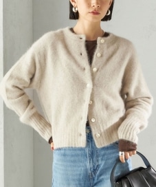 〔ONE SIZE〕【一部WEB限定】〈手洗い可能〉フォックス クルーネック ニット カーディガン