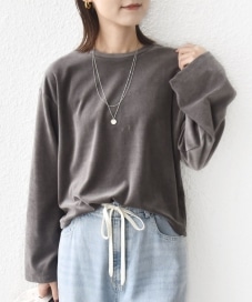 着用感 : ベロアですがトレーナーより薄手の割に暖かいです。インナーでもかさばりがないのが◎です。