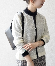 ◆ 商品名: スパンコール ジャカード バイカラー クルーネック シャツ カーディガン
