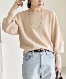 〔ONE SIZE〕quaranciel:〈手洗い可能〉AQUA カシミヤ ミックス ボートネック ロングリブ パフ ニット