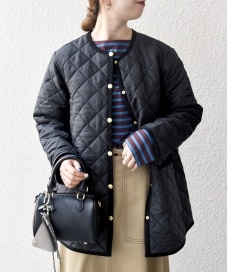 ノーカラーなのでシャツやフードの物とも合わせやすく、コーディネートの幅広めです。