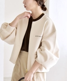 〔ONE SIZE〕quaranciel:〈洗濯機可能〉ポンチ ロゴプリント スウェット ジップ ブルゾン カーディガン