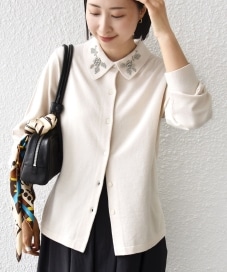 〔ONE SIZE〕【WEB限定】〈手洗い可能〉ビーズ 刺しゅう 襟付 ニット カーディガン