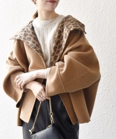 着用アイテム:リバー スタンドカラー ポンチョ ショートコート キャメル