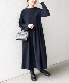 ◆ 商品名: エアニードルクルーネックタックフレアワンピース